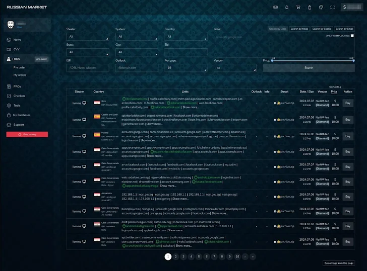 For $10 or less, threat actors can obtain all kinds of accesses on such platforms, with the added benefit that such a log will be exclusively theirs, at least for some time. In the past, there were three major marketplaces operating simultaneously. After Genesis.Market was taken down in an international law enforcement operation, and 2Easy marketplace development was abandoned, there’s just one major player left: the infamous Russian Market. As of today (13-07-2024), it has 7,266,780 records available for sale, and an unknown but surely large number of logs have already been sold on the platform.