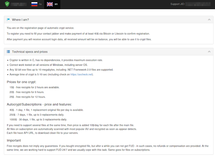 | An example of automated crypter service |