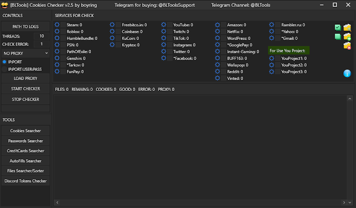 | An example of tool used to check validity of credentials included in infostealer logs |