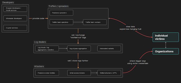 You don’t have to be particularly tech-savvy to spread infostealer malware, nor rich to obtain valuable data stolen by other threat actors. Let’s take a look at how the whole ecosystem works.