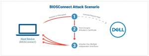 When BIOSConnect attempts to connect to the backend Dell HTTP server to perform a remote update or recovery, it enables the system’s BIOS (the firmware used to perform hardware initialization during the booting process) to reach out to Dell backend services over the internet. Then, it coordinates an update or recovery process.
