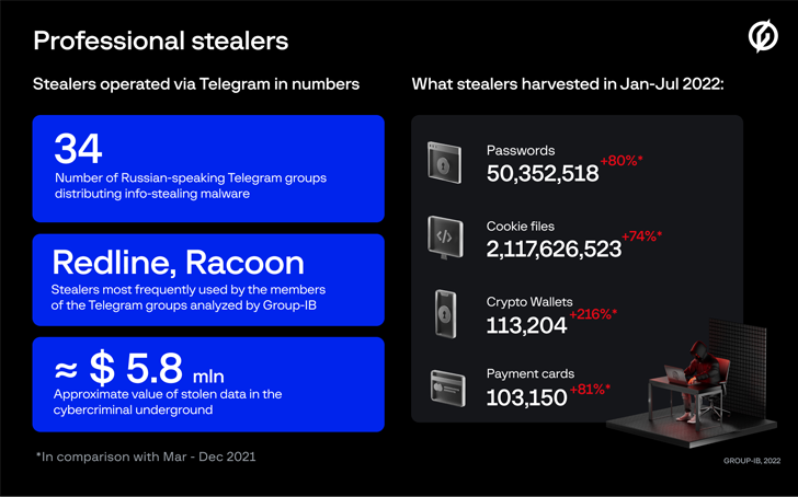 As many as 34 Russian-speaking gangs distributing information-stealing malware under the stealer-as-a-service model stole no fewer than 50 million passwords in the first seven months of 2022.