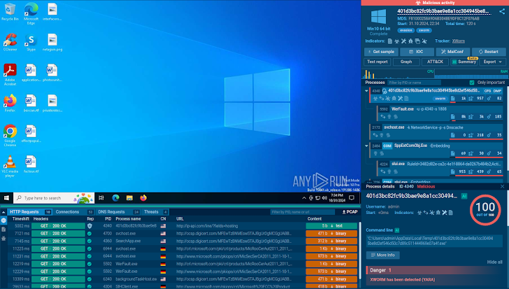 | ANY.RUN sandbox session showing the results of XWorm detonation |