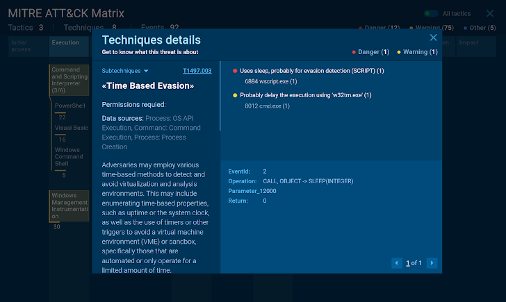 | The sandbox assigns relevant TTPs to different malicious actions |