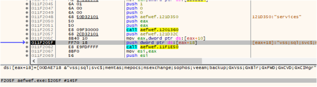 The services are then disabled using Windows Service Control Manager (SCM) API function. Further, it retrieves the names of the processes and proceeds to terminate them by using the ‘Taskkill’ command.