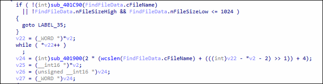 It checks if the file size is less than equal to 1 KB, and discards them from further encryption process as shown in the images given below.