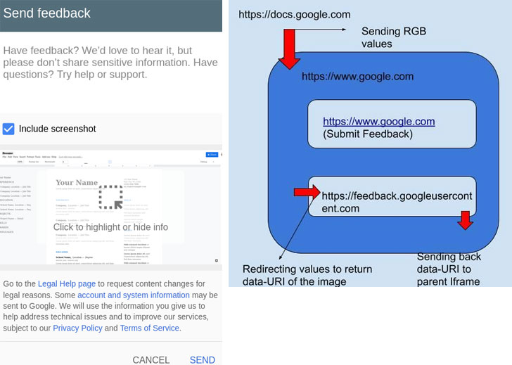 Google has patched a bug in its feedback tool incorporated across its services that could be exploited by an attacker to potentially steal screenshots of sensitive Google Docs documents simply by embedding them in a malicious website.