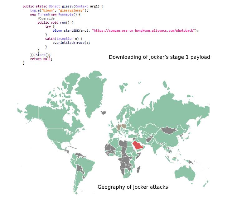 Joker, a repeat offender, refers to a class of harmful apps that are used for billing and SMS fraud, while also performing a number of actions of a malicious hacker’s choice, such as stealing text messages, contact lists, and device information.