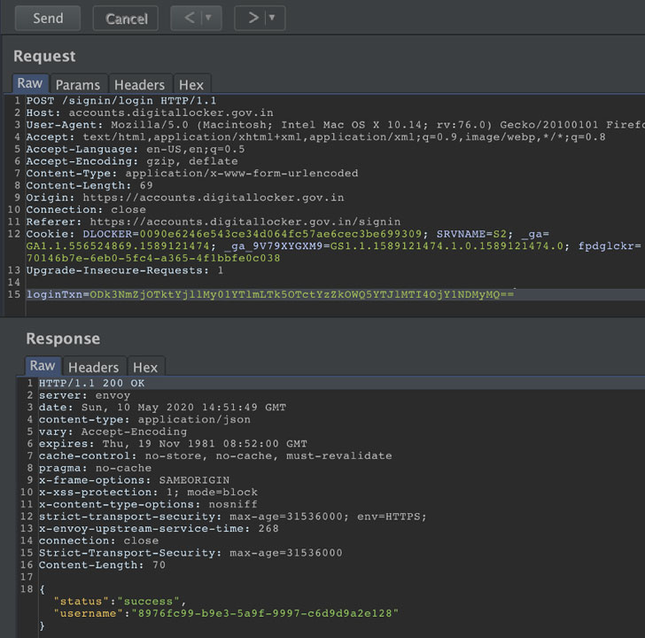 According to Mohan, to unauthorizedly access a targeted Digilocker account, all an attacker needs to know is either victim’s Aadhaar ID or linked mobile number or username, prompting the service to send an OTP and subsequently exploiting the flaw to bypass the sign-in process.