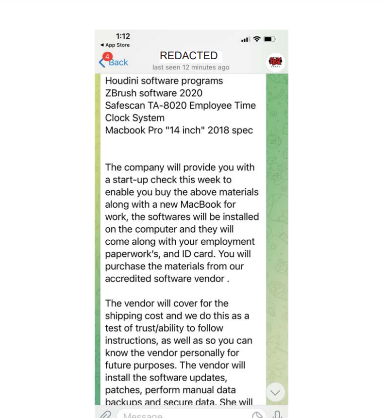 After the interview, there’s just one step left for the interviewee — they are asked to send money for “work equipment” like an iPad, which the interviewer assures the new hire will be refunded. Spoiler: they aren’t going to be.