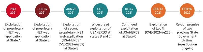 Mandiant sketched out a timeline, replicated below, showing the attacks against state government networks.