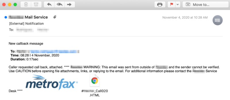 Using these techniques, the phishing email attempted to trick the recipient into thinking they had received a voicemail and that a callback was requested.