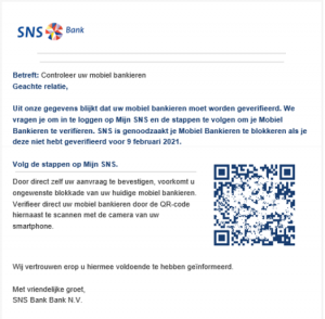In one example from Q1 2020, Kasperky reported that clients of several Dutch banks received a fraud email which prompted them to scan a QR code to “unlock” mobile banking. Instead, they were directed to a web page loaded with malware.