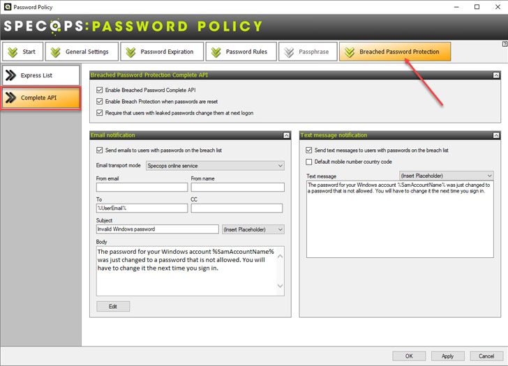 In addition to the Express List, the Specops Complete API solution provides additional capabilities.
