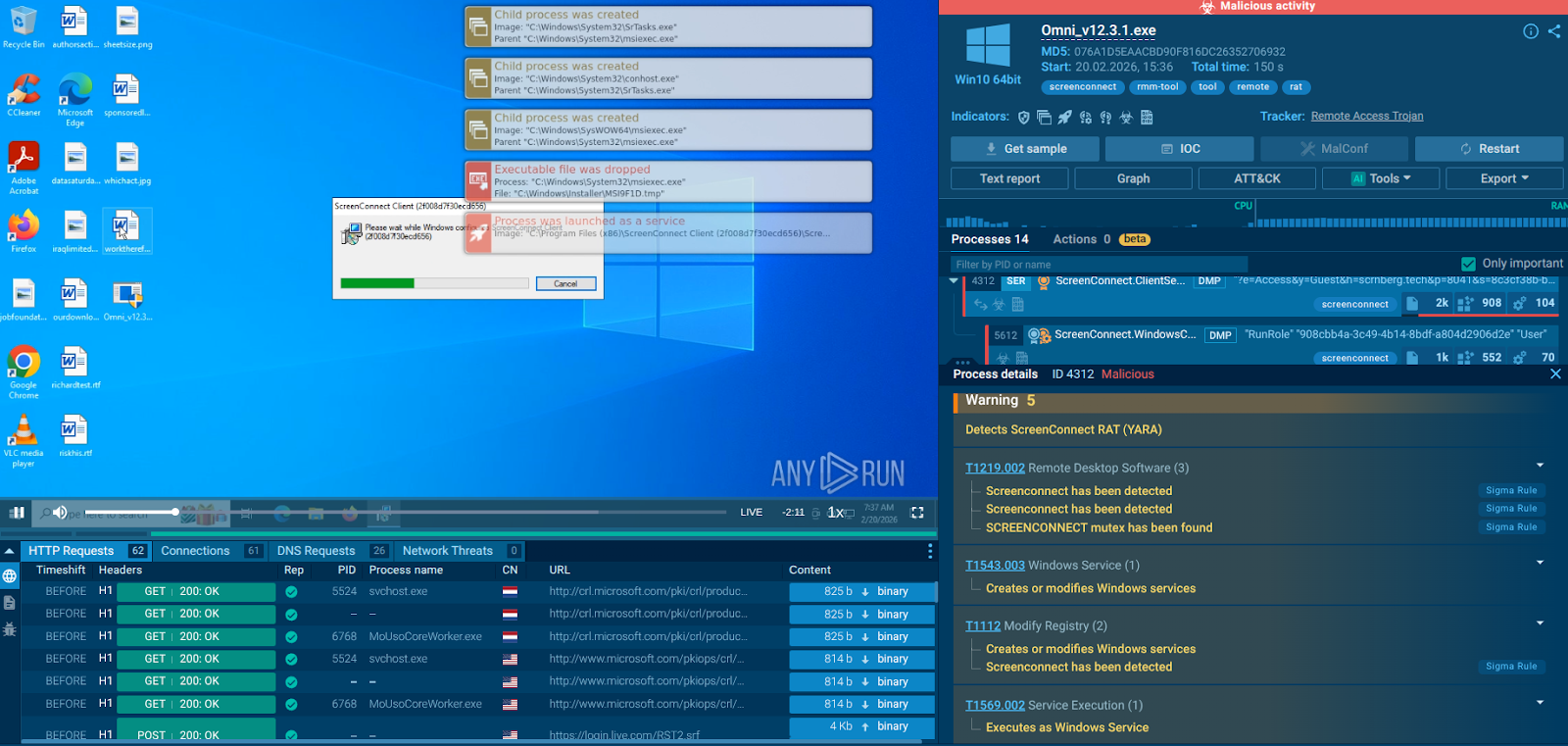 | Sandbox detonation detects ScreenConnect malware |