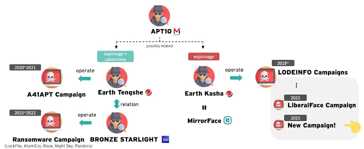 MirrorFace, also tracked as Earth Kasha, is assessed to be part of an umbrella group known as APT10, which also comprises clusters tracked as Earth Tengshe and Bronze Starlight. It’s known for its targeting of Japanese organizations at least since 2019, although a new campaign observed in early 2023 expanded its operations to include Taiwan and India.