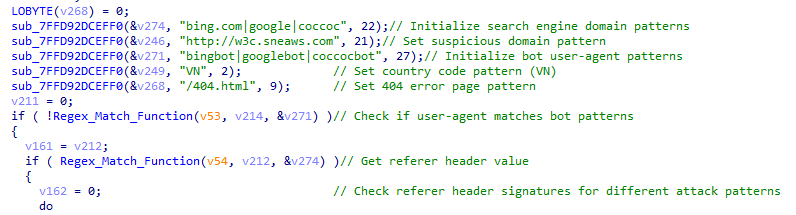 “Since SEO poisoning relies on injecting JavaScript links into pages that search engines crawl, the malware focuses on dynamic pages (e.g., default.aspx, index.php) where these injections are most effective. Furthermore, by restricting hooks to other specific file types, the malware avoids processing incompatible static files, thereby preventing the generation of suspicious server error logs.”