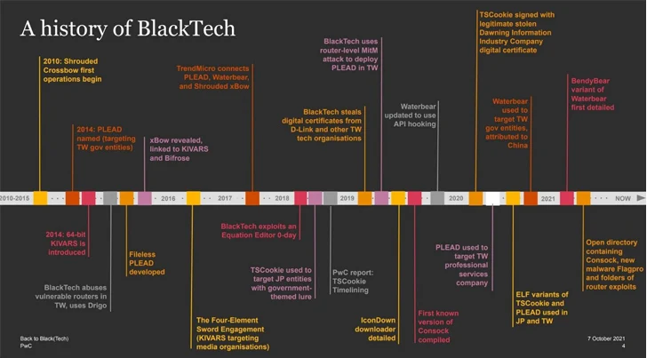 The attacks have been tied to a malicious cyber actor dubbed BlackTech by the U.S. National Security Agency (NSA), Federal Bureau of Investigation (FBI), Cybersecurity and Infrastructure Security Agency (CISA), Japan National Police Agency (NPA), and the Japan National Center of Incident Readiness and Strategy for Cybersecurity (NISC).