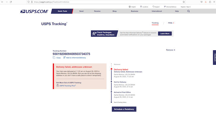 A stand-out aspect of the activity is the use of breached Apple iCloud accounts as a delivery vector to send package delivery failure messages, urging recipients to click on a link to reschedule the delivery and enter their credit card information in a fake form.