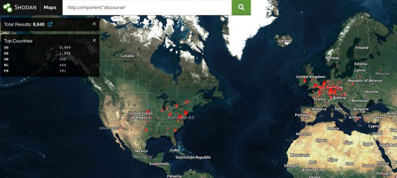 Although the software-as-a-service (SaaS) versions of Discourse were fixed as of Wednesday, there might still be many vulnerable deployments. A Shodan search pulled up 8,640 Discourse deployments on Monday morning.