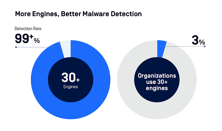 - Employing multiple anti-malware engines is vital. Scanning with over 30 engines hit a 99%+ accuracy rate.