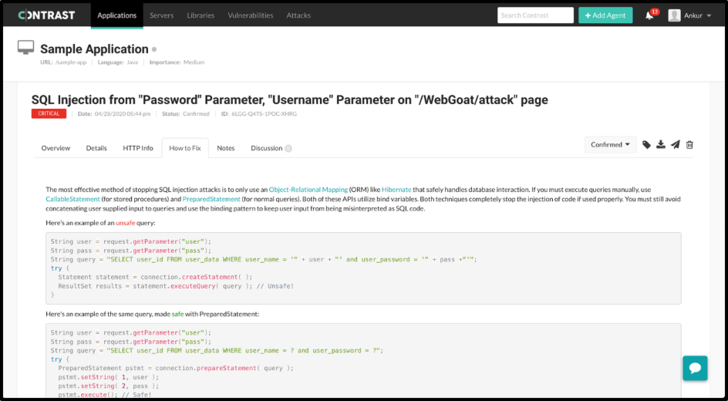 Vulnerability View — Get unprecedented access to detailed information about any vulnerabilities found in custom-source code during application runtime. Learn about what exactly was found, understand the security risk, track the data flow, or even replay the HTTP request. Most importantly, obtain clear and actionable remediation guidance.