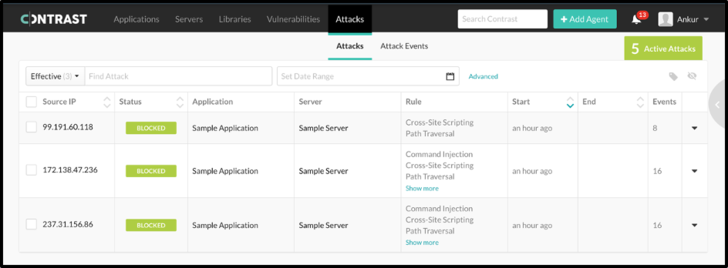 Attack View — Monitor attacks against the application while learning about the attacker’s IP address, the vulnerability exploited, and attack timelines. Use Contrast Protect to automatically block and prevent these attacks, both known and unknown (zero-day), from succeeding either at the perimeter of the application or just before the malicious action is taken from within the application.