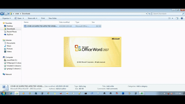 A victim receives a phishing mail with an attachment titled as “COVID-19 SUSPECTED AFFECTED VESSEL.doc” OR “COVID-19 measures for FAIRCHEM STEED, Voyage (219152).doc”. This doc is an RTF file containing OLE2Link object to exploit CVE-2017-8570. This vulnerability triggers the execution of scripts without user interaction. After successful exploitation, winword.exe process drops embedded .sct file and executes it. The .sct file contains code as shown below, which executes PowerShell.exe to download and execute payload from a remote server.