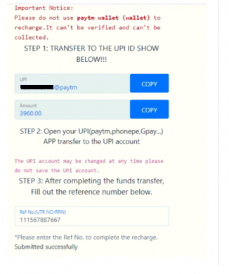 Under this method, the user is redirected to https[:]//gateway[.]shineupay[.]com and after clicking on ‘Recharge’, the user is further redirected to https[:]//mixint[.]fxsgkt[.]com for payment.