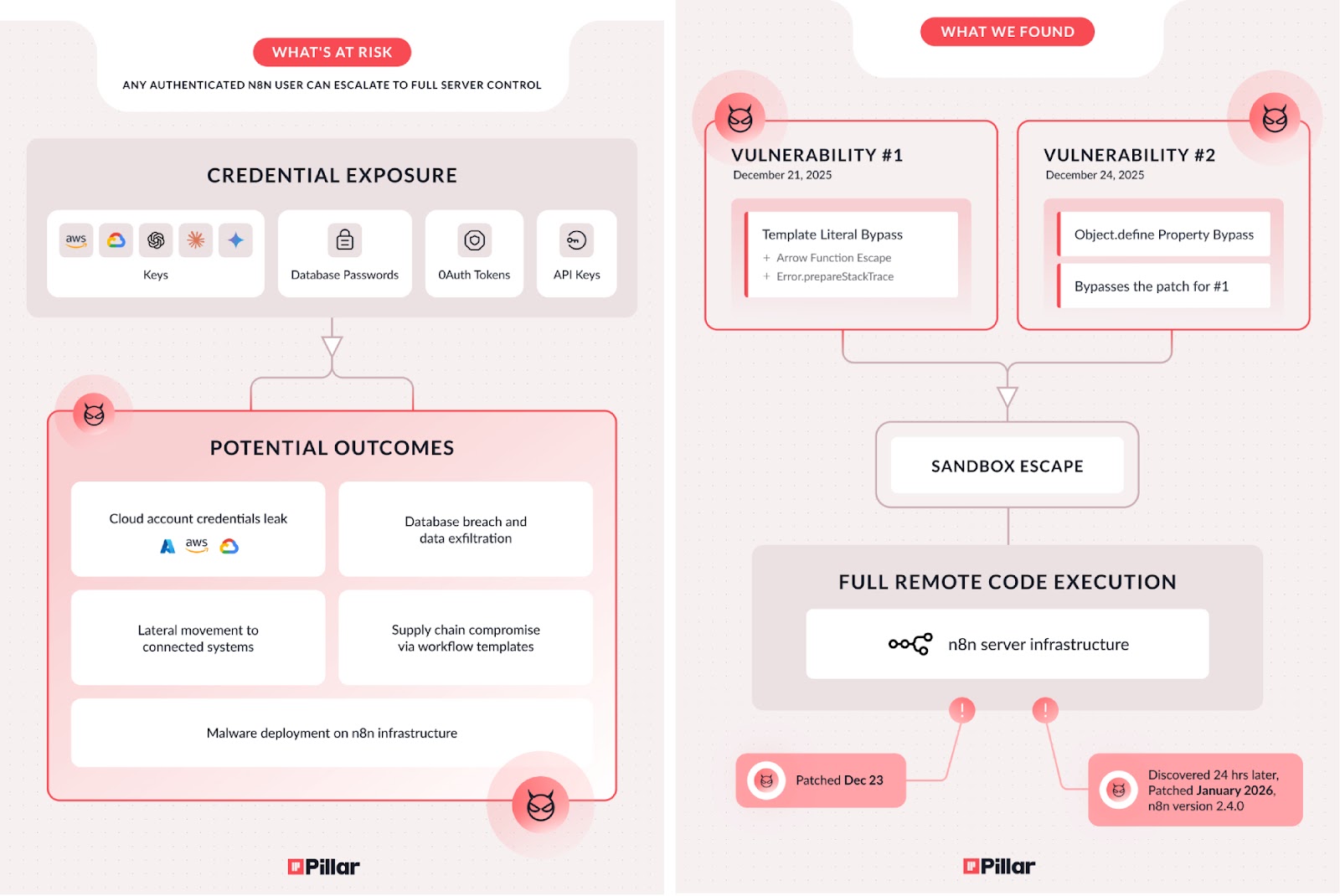 Pillar’s report has described the issue as permitting an attacker to steal API keys, cloud provider keys, database passwords, OAuth tokens, and access the filesystem and internal systems, pivot to connected cloud accounts, and hijack artificial intelligence (AI) workflows.