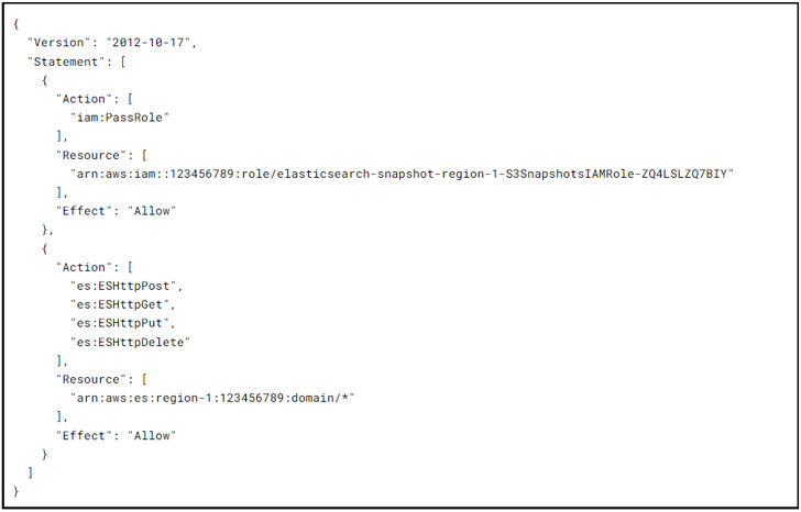 The EsSnapshotIAMRole grants Lambda the permissions needed by curator to interact with the Elasticsearch domain: