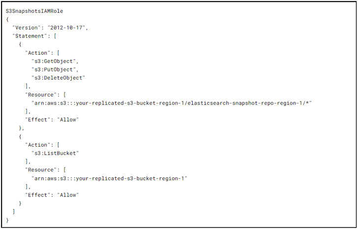 The S3SnapshotsIAMRole grants curator the permissions needed for the creation of the snapshot repository and the management of actual snapshots themselves: