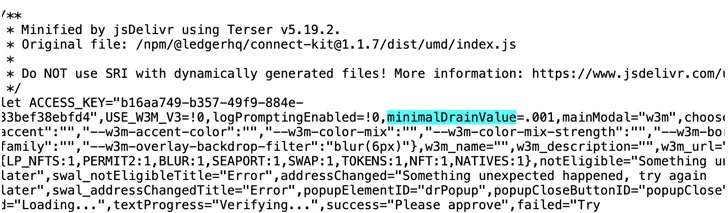 Versions 1.1.5 and 1.1.6, while lacking an embedded drainer, were modified to download a secondary npm package, identified as 2e6d5f64604be31, which acts as a crypto drainer. The module is still available for download as of writing.