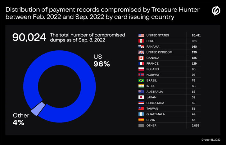 Group-IB, which identified the command-and-control (C2) servers associated with the two PoS malware, said 77,428 and 90,024 unique payment records were compromised by MajikPOS and Treasure Hunter between February and September 2022.
