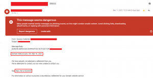 There is a new phishing attack going on, which you need to be aware of a recent phishing email out there, the ‘Domain Name Expiration Scam.’ The target of this scam is to trick people with fake Domain Name Expiration to steal sensitive payment information from consumers or make payments to them.