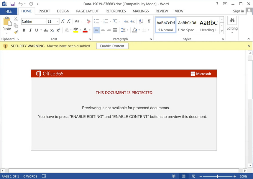 It then prompts the user to click on ‘Enable Editing’ and ‘Enable Content’ to view the document.
