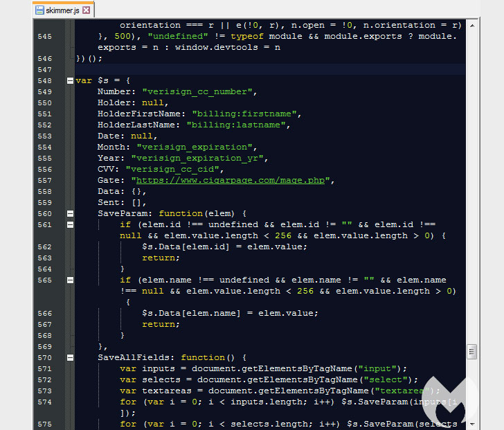 This favicon loaded from the homoglyph domain was subsequently used to inject the Inter JavaScript skimmer that captures the information entered on a payment page and exfiltrates the details to the same domain used to host the malicious favicon file.