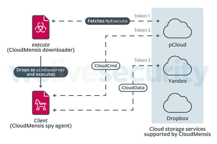 The malware, codenamed CloudMensis by Slovak cybersecurity firm ESET, is said to exclusively use public cloud storage services such as pCloud, Yandex Disk, and Dropbox for receiving attacker commands and exfiltrating files.