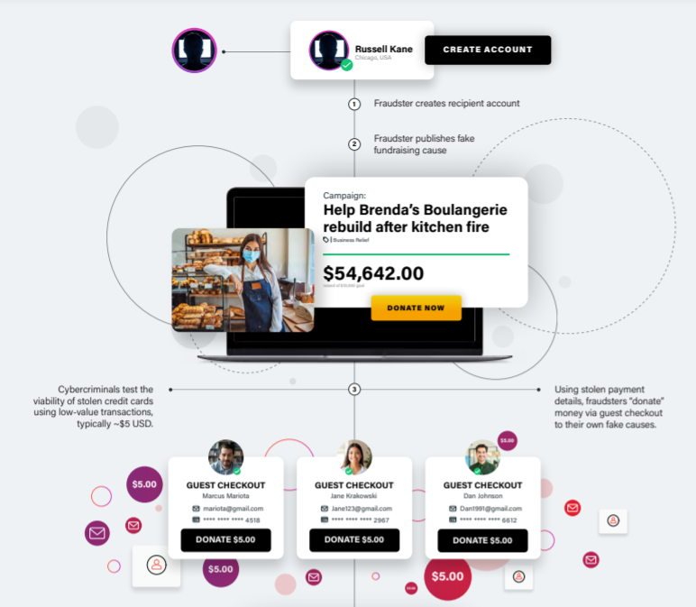 “Using stolen credit cards, fake accounts, and automated scripts to do the dirty work, this fraud ring repeatedly funneled small amounts of money to themselves by setting up fake causes on various giving sites in order to request donations,” according to Sift’s annual report on evolving fraud tactics, released Wednesday.