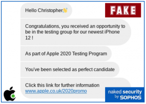 The post “Free Apple iPhone 12? Chatbot Scam Spreads Via Texts” appeared first on Threat Post