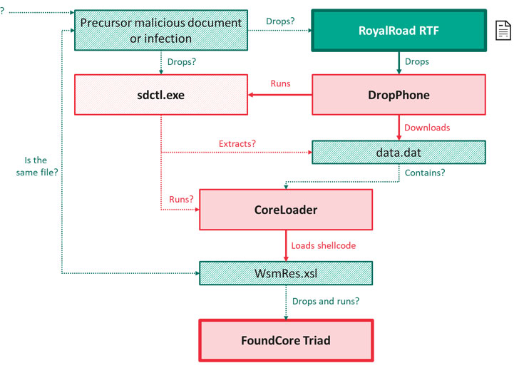 The cybersecurity firm theorized the attacks originate with a spear-phishing campaign or other precursor infections, which trigger the download of decoy RTF documents from a rogue website, ultimately leading to the deployment of FoundCore.