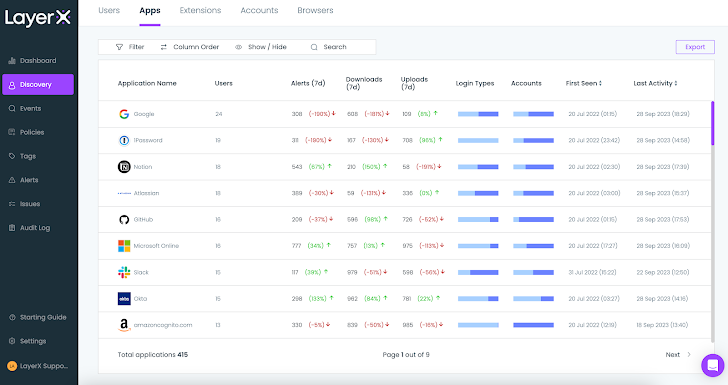 | Figure 3: The LayerX Discovery screen, Apps section |
