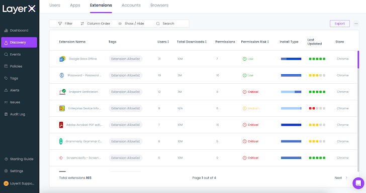 | Figure 5: The LayerX Discovery screen, Extensions tab |