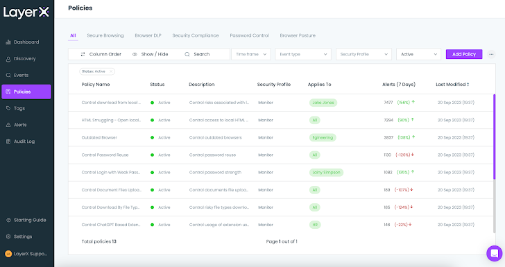 | Figure 7: The LayerX Policies screen |