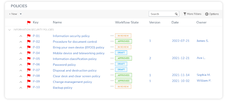 - One single source of truth: A single source of truth ensures everyone in the organization makes decisions based on the same consistent and accurate data. GRC can help by defining the governance over data usage and manipulation. Furthermore, GRC makes it easy to communicate policies, see who the policy creator is, and ensure employees are acting according to the standards.