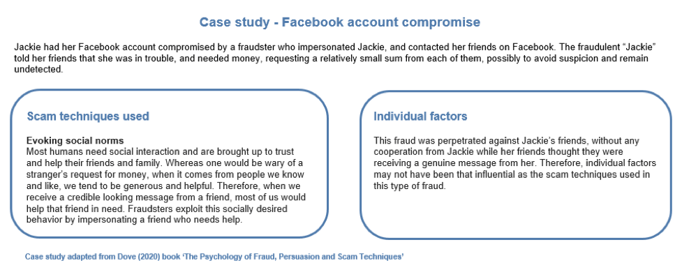 Most people think and operate in this way. But this is also how we can be exploited by scammers. Look at the following real-life case study of a common Facebook scam that targets the friends of a victim’s compromised account.