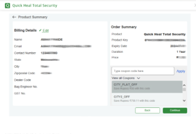 Step 5: In the product summary window add any apply any coupon code you have and click ‘Apply’ and continue.
