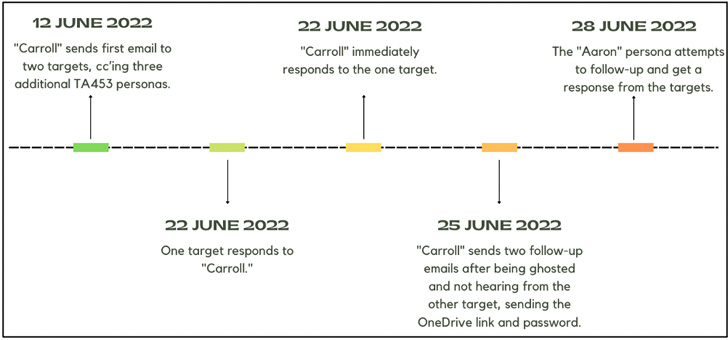 Then in July 2022, the cybersecurity company uncovered attempts on the part of TA453 to masquerade as journalists to lure academics and policy experts into clicking on malicious links that redirect the targets to credential harvesting domains.