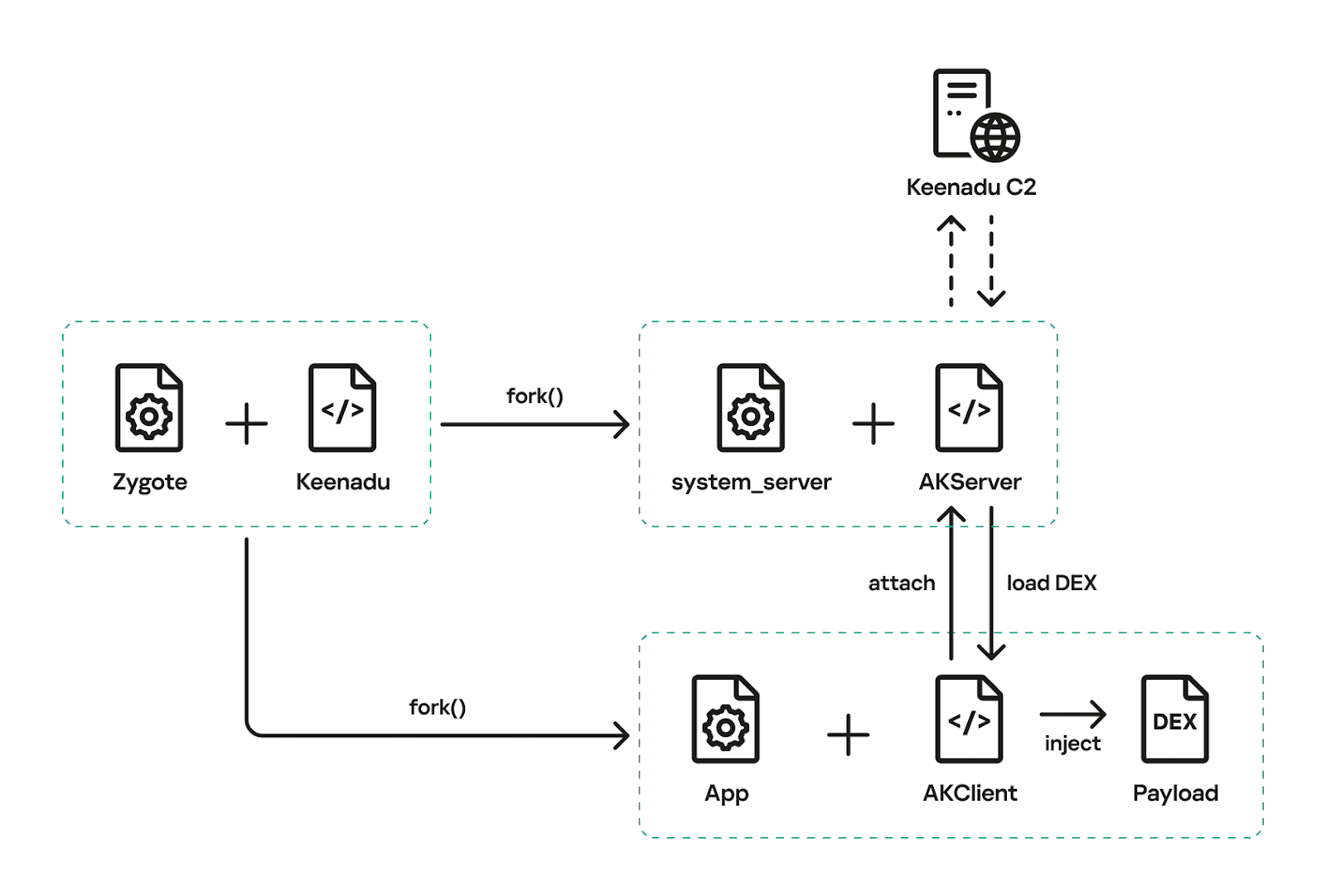 Keenadu was first disclosed by Kaspersky in late December 2025, describing it as a backdoor in libandroid_runtime.so, a critical shared library in the Android operating system that’s loaded during boot. Once it’s active on an infected device, it’s injected into the Zygote process, a behavior also observed in another Android malware called Triada.