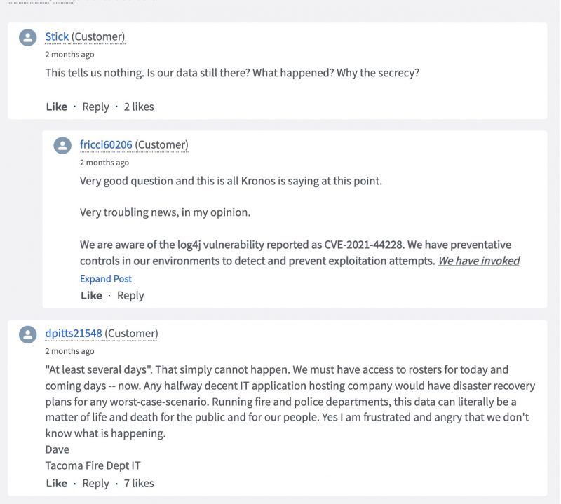 Customers were already seething over the company’s lack of communication as the weekend unwound following the Saturday, Dec. 11 discovery of the attack. They complained about poor communication, a lack of information about whether their data was still out there somewhere, that the company’s portal and support site had gone AWOL right in the thick of things, and that the “weeks” or “delays” to restore systems was insupportable.